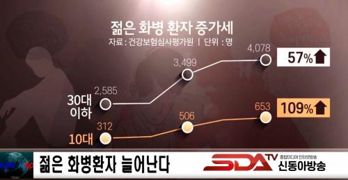 2014³â 2,585¸íÀÌ´ø 30´ë ÀÌÇÏ Èº´ ȯÀÚ´Â Áö³ÇØ 4,078¸íÀ¸·Î 58% °¡±îÀÌ Áõ°¡Çߴµ¥, ±×Áß 10´ë ȯÀÚµµ 312¸í¿¡¼ 653¸íÀ¸·Î 2¹è ÀÌ»óÀÌ µÆ½À´Ï´Ù.