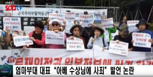 ÁÖ¿Á¼ø ¾ö¸¶ºÎ´ë ´ëÇ¥ µîÀº Áö³ 1ÀÏ ¼¿ï Á¾·Î±¸ ¿¾ ÀϺ»´ë»ç°ü ¾Õ¿¡¼ ¾Æº£ ÃѸ®¸¦ ¡°¾Æº£ ¼ö»ó´Ô¡±À̶ó°í ÁöĪÇÏ¸ç ¡°Çѱ¹ÀÇ ÁöµµÀÚ°¡ ¹«ÁöÇØ ÇÑÀÏ °ü°è¸¦ ÆÄ±«ÇÑ °Í¿¡ ´ëÇØ ±¹¹ÎÀÇ ÇÑ »ç¶÷À¸·Î¼ Áø½ÉÀ¸·Î »çÁ˵帰´Ù.¡±°í ¸»Çß½À´Ï´Ù.
