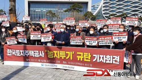 ³ó¹ÎµéÀº "3±â ½Åµµ½Ã LH Á÷¿øµéÀÌ Åõ±âÇÑ ¶¥ Áß 98.6%°¡ ³óÁö¶ó´Â »ç½Ç¿¡ ºÐ³ëÇÑ´Ù"¸ç "°¡Àå ¸¸¸¸ÇÑ Åõ±â´ë»ó Áß Çϳª°¡ ³óÁö¶ó´Â Á¡¿¡ ¸Á¿¬ÀÚ½ÇÇÒ »ÓÀÌ¶ó¡±°í ¸ñûÀ» ³ô¿´½À´Ï´Ù.