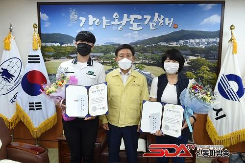 ±èÇØ½Ã´Â Áö³­ 11ÀÏ ÀÇ·Î¿î ±èÇØ½Ã¹Î Á¦10È£¿Í 11È£¿¡ ¼±Á¤µÈ ±è³²Èñ(52)¾¾¿Í¡¤¹ÚÁØ¿µ(18)±º¿¡°Ô Áõ¼­¿Í °Ý·Á±ÝÀ» Àü´ÞÇß½À´Ï´Ù.