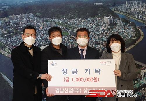 [½Åµ¿¾Æ¹æ¼Û´º½º=Á¤ÁöÀ± ±âÀÚ] °æ³²»ê¾÷(ÁÖ)(´ëÇ¥ Á¶Çö¼Û) ¹× Á÷¿ø »óÁ¶È¸(ȸÀå ÃÖÁ¤³²)´Â Áö³­ 8ÀÏ ¼º±Ý 100¸¸¿øÀ» ÁøÁֽú¹ÁöÀç´Ü(ÀÌ»çÀå À̼º°©)¿¡ Àü´ÞÇß½À´Ï´Ù.