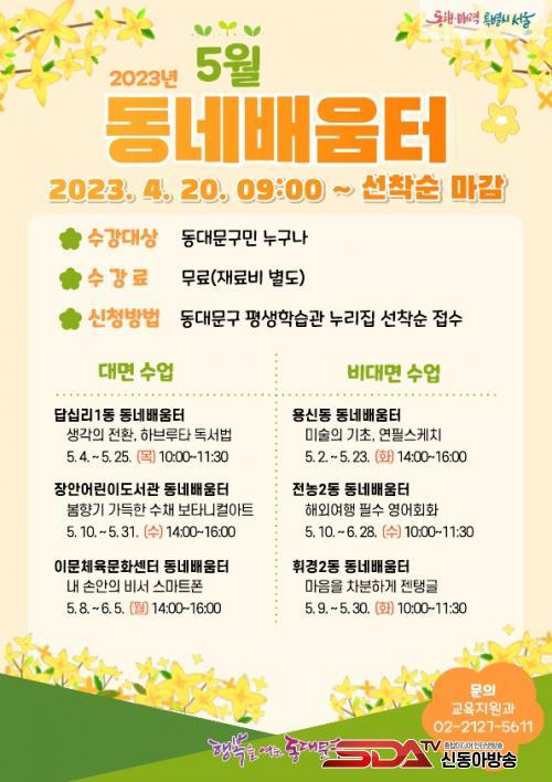 5¿ù µ¿³×¹è¿òÅÍ ÇÁ·Î±×·¥¿¡ Âü¿©ÇϰíÀÚ ÇÏ´Â ±¸¹ÎÀº ¿À´Â 30ÀϱîÁö µ¿´ë¹®±¸ Æò»ýÇнÀ°ü ´©¸®Áý(https://www.ddm.go.kr/lll/index.do) ÇÁ·Î±×·¥ Á¢¼ö¶õ¿¡¼ ¼±Âø¼øÀ¸·Î ½Åû°¡´ÉÇϸç, ¼ö°·á´Â ¹«·á´Ù. ´Ù¸¸, ÇÁ·Î±×·¥ Ư¼º¿¡ µû¶ó ¹ß»ýÇÏ´Â Àç·áºñ¿Í ±³Àçºñ´Â ¼ö°»ýÀÌ Á÷Á¢ ºÎ´ãÇØ¾ß ÇÑ´Ù.
