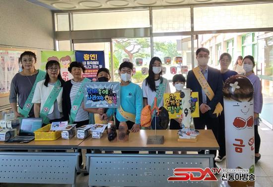 ÇԾȱºº¸°Ç¼Ò´Â 23ÀÏ ¹ý¼öÃʵîÇб³¿¡¼ Èí¿¬ÀÇ À§Ç輺À» ¾Ë¸®´Â ¸ðÇü°ú ¹è³Ê¸¦ Àü½ÃÇϰí È«º¸¹°À» ¹èºÎÇÏ¸ç ´ã¹èÀÇ À§Ç輺°ú ½É°¢¼ºÀ» ¾Ë·È½À´Ï´Ù. À̳¯ Çлý°ú ±³Á÷¿øÀº ±Ý¿¬°ú °ü·ÃµÈ ¹®±¸°¡ ÀûÈù ÆÖ¸»À» µé°í ¾î±ú¶ì¸¦ Âø¿ëÇØ µî±·±æ Èí¿¬ ¿¹¹æ Ȱµ¿À» ÇßÀ¸¸ç, ÇлýµéÀº Çлý±Ý¿¬¼±¼¸¦ ³¶µ¶Çϰí Èí¿¬¿¹¹æ ºÎ並 ²Ù¸ç Àü½ÃÇß½À´Ï´Ù.