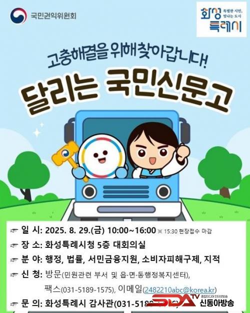 »ó´ã ¿¹¾àÀº ¿À´Â 22ÀϱîÁö ¹Î¿ø»ó´ã ½Åû¼­¸¦ À¾¸éµ¿ ÇàÁ¤º¹Áö¼¾ÅÍ·Î ¹æ¹® Á¦ÃâÇϰųª, È­¼ºÆ¯·Ê½Ãû °¨»ç°üÀ¸·Î ÆÑ½º(031-5189-1575) ¶Ç´Â À̸ÞÀÏ(2482210abc@korea.kr)·Î Á¦ÃâÇÏ¸é ½ÅûÇÒ ¼ö ÀÖ´Ù.