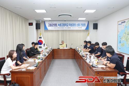 [½Åµ¿¾Æ¹æ¼Û Àü³²°íÈï=¹Ú±¤¿Á±âÀÚ] °íÈﱺÀÇȸ(ÀÇÀå ·ùÁ¦µ¿)´Â 20ÀÏ ±ºÀÇȸ 1Ãþ ¼ÒȸÀǽǿ¡¼­¡¸³ìµ¿°íµîÇб³ Çлý°úÀÇ ¼ÒÅë °£´ãȸ¡¹¸¦ °³ÃÖÇß´Ù. À̹ø °£´ãȸ´Â û¼Ò³â »ýȰȯ°æ °³¼±°ú Áö¿ª»çȸ ¹ßÀüÀ» À§ÇØ ÇлýµéÀÇ ¸ñ¼Ò¸®¸¦ Á÷Á¢ µè°í À̸¦ ÀÇÁ¤È°µ¿¿¡ ¹Ý¿µÇϱâ À§ÇØ ¸¶·ÃµÆ´Ù.