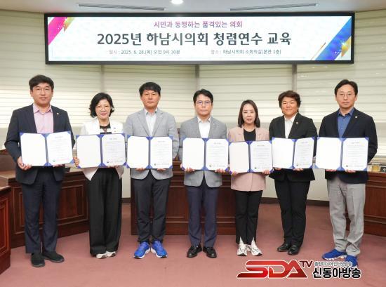8¿ù 28ÀÏ ¡®2025³â Çϳ²½ÃÀÇȸ û·Å¿¬¼ö ±³À°¡¯¿¡¼­ ÀÇ¿øµéÀÌ Ã»·Å ¼­¾à½Ä ÈÄ ±â³ä»çÁøÀ» Âï°í ÀÖ´Ù. (»çÁø_Çϳ²½ÃÀÇȸ Á¦°ø)