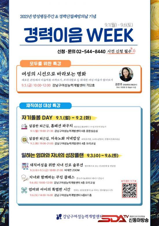 ÀÌ¿Í ÇÔ²², °­³²±¸¿©¼º´É·Â°³¹ß¼¾ÅÍ¿¡¼­´Â ÁֹΠ´©±¸³ª Áñ±æ ¼ö ÀÖ´Â ´Ù¾çÇÑ ÁÖ°£ ÇÁ·Î±×·¥À» ¿î¿µÇÑ´Ù. 9¿ù 1ÀÏ¿¡´Â Åð±Ù±æ¿¡ Âü¿©ÇÒ ¼ö ÀÖ´Â ¡®½ºÆ®¸µ ÆÄ¿ìÄ¡ ¸¸µé±â¡¯, 2ÀÏ¿¡´Â ¡®Àú¼Ó³ëÈ­ »ø·¯µå¡¤»÷µåÀ§Ä¡ Á¶¸®¹ý¡¯À» ¹è¿öº¸´Â ½Ã°£ÀÌ ¸¶·ÃµÈ´Ù. 3ÀϺÎÅÍ 5ÀϱîÁö´Â ÀçÁ÷ ¿©¼ºÀ» ´ë»óÀ¸·Î ¡®¸í¸®ÇÐÀ¸·Î º¸´Â ÀÚ³à Áø·Î ¼Ö·ç¼Ç¡¯ ¿Â¶óÀÎ °­Á°¡ ¿­¸®¸ç, 5ÀÏ ¿ÀÀü¿¡´Â ±×¸²À¸·Î ¼ºÆòµîÀ» ÀÌÇØÇϴ Ư°­À» ÁøÇàÇÑ´Ù. ÁÖ¸»ÀÎ 6ÀÏ¿¡´Â °¡Á·ÀÌ ÇÔ²²ÇÒ ¼ö ÀÖ´Â ÇÁ·Î±×·¥ÀÌ ´«±æÀ» ²ö´Ù. ¿ÀÀü¿¡´Â ¡®ÀÚ³à¿Í ÇÔ²²ÇÏ´Â ÄíÅ·¼ö¾÷¡¯¿¡¼­ Â˵æ ÄíŰ¿Í ij¸¯ÅÍ ÄÉÀÌÅ©¸¦ ¸¸µé°í, ¿ÀÈÄ¿¡´Â ¾ö¸¶´Â ²É²ÈÀÌ·Î Èú¸µÀ», ¾ÆÀÌ´Â µå·Ð ¸¸µé±â·Î âÀÇ·ÂÀ» Ű¿ì´Â ¡®¾ö¸¶¿Í ¾ÆÀÌÀÇ Æ¯º°ÇÑ ½Ã°£¡¯ÀÌ ¿­¸°´Ù.