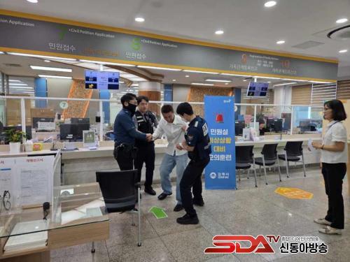 ½Ã´Â ÈÆ·Ã¿¡ ¾Õ¼­ Çູ¹Î¿ø½Ç Á÷¿ø, û¿ø°æÂû, ±èÇØÁߺΰæÂû¼­ °æÂû°üÀ» Æ÷ÇÔÇÑ ºñ»ó´ëÀÀ¹ÝÀ» Æí¼ºÇØ ±¸¼º¿øº° ¿ªÇÒ°ú ÀÓ¹«¸¦ ¼÷ÁöÇϵµ·Ï Çß´Ù. Âü°¡ÀÚµéÀº »ó±ÞÀÚ µî Àû±Ø °³ÀÔ, ºñ»óº§ ÀÛµ¿(112 Á¾ÇÕ»óȲ½Ç ¿¬°á)°ú û¿ø°æÂû È£Ãâ, ÇÇÇØ°ø¹«¿ø º¸È£, ¹æ¹® ¹Î¿øÀÎ ´ëÇÇ, °¡ÇعοøÀÎ ÁøÁ¤, °æÂû ÀÎ°è µî ´Ü°èº° ½Ã³ª¸®¿À¿¡ ¸ÂÃç ´ëÀÀÇß´Ù. »óȲÀ» ¸ð¸£´Â ¹Î¿øÀεéÀ» À§ÇØ ÈÆ·Ã Àü¿¡ °¡»ó »óȲÀÓÀ» ¾Ë·ÈÀ¸¸ç ¹Î¿ø½Ç ÀÔ±¸¿¡´Â ¸ðÀÇÈÆ·ÃÀ» ¾Ë¸®´Â ¹è³Ê¸¦ ¼³Ä¡Çß´Ù.