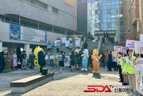 Âü¿©ÀÚµéÀº Ä·ÆäÀÎ ¹®±¸°¡ µé¾î°£ ÆÖ¸»°ú Çö¼ö¸·À» µé°í ±¸È£¸¦ ¿ÜÄ¡¸ç, µî±·±æ ÇлýµéÀ» ´ë»óÀ¸·Î Çб³Æø·Â¿¡ ´ëÇÑ °æ°¢½ÉÀ» ³ôÀ̴ Ȱµ¿À» Àû±ØÀûÀ¸·Î ÆîÃÆ´Ù. ÇлýµéÀº ÇÔ²² ±¸È£¸¦ ¿ÜÄ¡°í, Ä·ÆäÀÎ Âü¿© ÀÎÁõ»çÁøÀ» ÃÔ¿µÇϸç ÇູÇÏ°í ¾ÈÀüÇÑ Çб³ ¸¸µé±â¿¡ µ¿ÂüÇß´Ù.