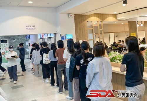 ´ö¼º¿©ÀÚ´ëÇб³ ÇлýµéÀÌ ¾ÆÄ§½Ä»ç¸¦ Çϱâ À§ÇØ ÁÙÀ» ±â´Ù¸®°í ÀÖ´Ù.