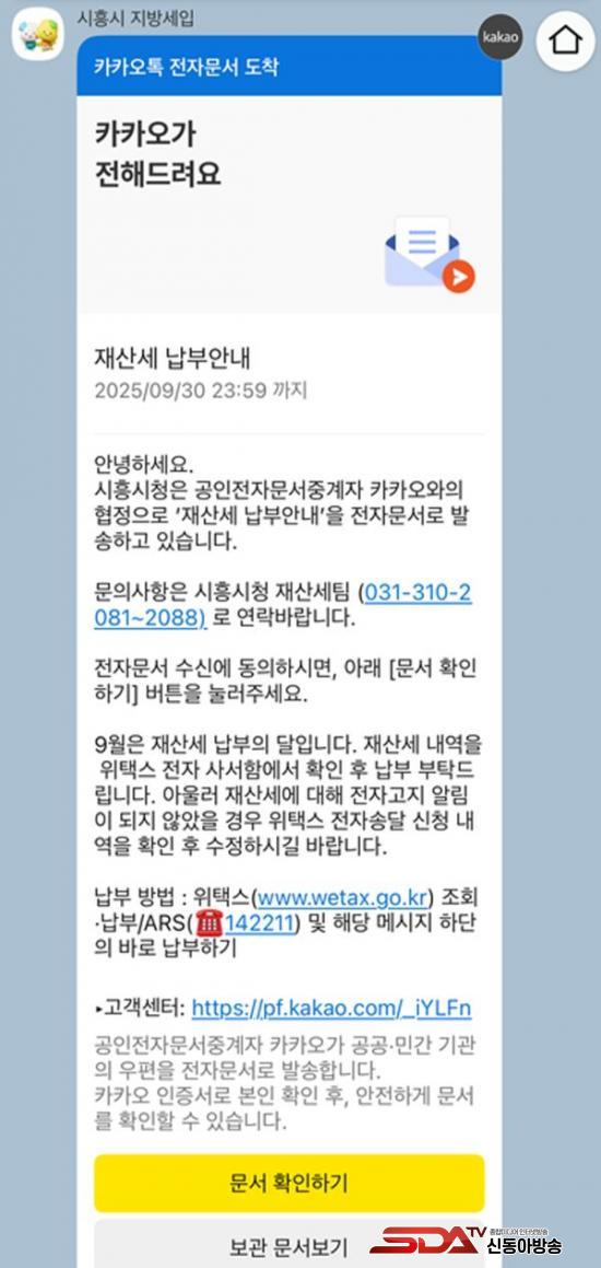 ½Ã´Â Áö³­ 9¿ù 17ÀÏ Àç»ê¼¼ 2,913°Ç°ú Áֹμ¼ »ç¾÷¼ÒºÐ 12,662°Ç¿¡ ´ëÇØ ¸ð¹ÙÀÏ ÀüÀÚ°íÁö¸¦ ¹ß¼ÛÇßÀ¸¸ç, ÇØ´ç ¾Ë¸²ÅåÀº 9¿ù 30ÀϱîÁö ¿­¶÷ÇÒ ¼ö ÀÖ´Ù.