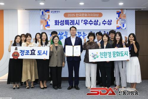[½Åµ¿¾Æ¹æ¼Û=ÀÌÀçö±âÀÚ] È­¼ºÆ¯·Ê½Ã°¡ ¹®È­Ã¼À°°ü±¤ºÎ ÈÄ¿ø°ú »ç´Ü¹ýÀÎ Çѱ¹¹®È­°¡Ä¡¿¬±¸Çùȸ(´ëÇ¥ ¿À¿ì½Ä) ÁÖÃÖ ¡®2025 Çѱ¹¹®È­°¡Ä¡´ë»ó¡¯¿¡¼­ ¡®¿ì¼ö»ó¡¯À» ¼ö»óÇß´Ù°í 24ÀÏ ¹àÇû´Ù.
