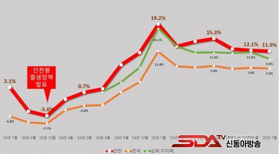 [½Åµ¿¾Æ¹æ¼Û ÀÎõ=À±¹Î½Ä±âÀÚ]ÀÎõ±¤¿ª½Ã(½ÃÀå À¯Á¤º¹)´Â 2025³â 7¿ù Ãâ»ý¾Æ ¼ö Áõ°¡À²ÀÌ Àü³â µ¿±â ´©°è ´ëºñ 11.9%¸¦ ±â·ÏÇÏ¸ç ´Ù½Ã Çѹø Àü±¹ 1À§¸¦ Â÷ÁöÇß´Ù°í ¹àÇû´Ù.