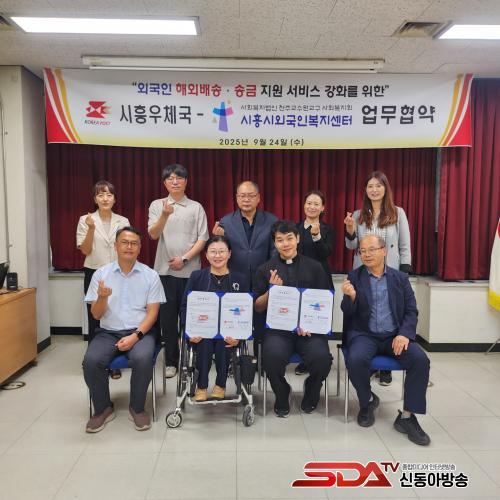 ½ÃÈï¿ìü±¹¿¡¼­ ÀÌ·ïÁø Çù¾à½Ä¿¡´Â ½ÃÈï½Ã ¿Ü±¹Àκ¹Áö¼¾ÅÍ °ü°èÀÚ 2¸í°ú ½ÃÈï¿ìü±¹ °ü°èÀÚ 5¸íÀÌ Âü¼®ÇßÀ¸¸ç, ¿Ü±¹ÀÎ ÁÖ¹ÎÀ» À§ÇÑ ÇØ¿Ü ¹è¼Û ¹× ±¹Á¦¼Û±Ý ¼­ºñ½º Áö¿ø°ú ÇÔ²² ½ÃÈï½Ã ¿Ü±¹Àκ¹Áö¼¾ÅÍÀÇ ¹ßÀüÀ» µµ¸ðÇÏ´Â ´Ù¾çÇÑ Çù·Â ¹æ¾ÈÀ» ³íÀÇÇß´Ù.