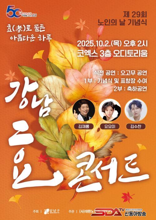 [½Åµ¿¾Æ¹æ¼Û °­³²±¸=À̽ŵ¿±âÀÚ] ²ÞÀÌ ¸ðÀÌ´Â µµ½Ã, ¹Ì·¡¸¦ ±×¸®´Â °­³²±¸°¡ Á¦29ȸ ³ëÀÎÀÇ ³¯À» ¸Â¾Æ ¿À´Â 10¿ù 2ÀÏ ¿ÀÈÄ 2½Ã, ÄÚ¿¢½º 3Ãþ ¿ÀµðÅ丮¿ò¿¡¼­ ¾î¸£½Å 1,000¿© ¸íÀ» ÃÊ´ëÇØ ¡®È¿(üø)·Î ¹°µç ¾Æ¸§´Ù¿î ÇϷ硯¸¦ ÁÖÁ¦·Î ±â³äÇà»ç¸¦ ¿¬´Ù.