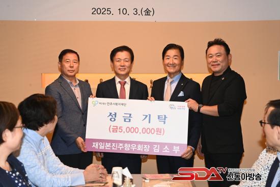 Áö³­ 3ÀÏ¿¡´Â¡®ÀçÀϺ»ÁøÁÖÇâ¿ìȸ¡¯°¡ ¹æ¹®ÇØ Á¶±ÔÀÏ ½ÃÀåÀ» ºñ·ÔÇÑ ÁøÁֽà °ü°èÀÚµé°ú ±è¼ÒºÎ ȸÀåÀ» Æ÷ÇÔÇÑ Çâ¿ìȸ¿øµéÀÌ ¿ìÈ£¸¦ ´ÙÁö´Â ±³·ùÀÇ ½Ã°£À» °¡Á³´Ù. ƯÈ÷ À̳¯ Çâ¿ìȸ¿¡¼­ Áö¿ª»çȸ ¹ßÀü°ú º¹ÁöÇâ»óÀ» À§ÇÑ ¼º±Ý 500¸¸¿øÀ» ÁøÁֽú¹ÁöÀç´Ü¿¡ ±âŹÇÏ¸ç °íÇâ¿¡ ´ëÇÑ ±íÀº ¾ÖÁ¤À» ÀüÇϱ⵵ Çß´Ù.