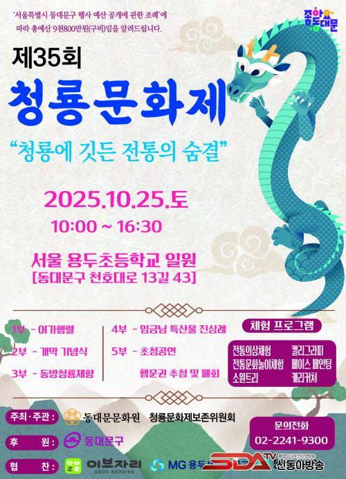 [½Åµ¿¾Æ¹æ¼Û µ¿´ë¹®±¸=À̽ŵ¿±âÀÚ] ¼­¿ï µ¿´ë¹®±¸´Â ¿À´Â 25ÀÏ ¿ëµÎÃʵîÇб³ ¿îµ¿Àå¿¡¼­¡¸Á¦35ȸ û·æ¹®È­Á¦¡¹¸¦ °³ÃÖÇÑ´Ù°í ¹àÇû´Ù. À̹ø Çà»ç´Â µ¿´ë¹®¹®È­¿ø°ú û·æ¹®È­Á¦º¸Á¸À§¿øÈ¸°¡ °øµ¿ ÁÖ°üÇϰí, µ¿´ë¹®±¸°¡ ÈÄ¿øÇÑ´Ù.