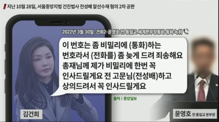 ±è°ÇÈñ¿¡°Ô ÅëÀϱ³ ³ú¹°À» Àü´ÞÇÑ ÇøÀÇ·Î ±¸¼Ó ±â¼ÒµÈ °ÇÁø¹ý»ç ÀçÆÇ¿¡¼­ ±è°ÇÈñ¿Í À±¿µÈ£ °£ ÅëÈ­°¡ °ø°³µÆ´Ù. ±¹¹Î ÇлìÀ» ¸í·ÉÇÑ À±¼®¿­ÀÇ 12.3 ³»¶õ ÀÌÈÄ Ã³À½À¸·Î ±è°ÇÈñ À°¼ºÀÌ ³ª¿Â °ÍÀ¸·Î, ³»¶õ °ü¿© Áõ°Åµµ À°¼ºÀ¸·Î ³ª¿Ã °ÍÀÎÁö ±ÍÃß°¡ ÁÖ¸ñµÈ´Ù. ´º½º°øÀå