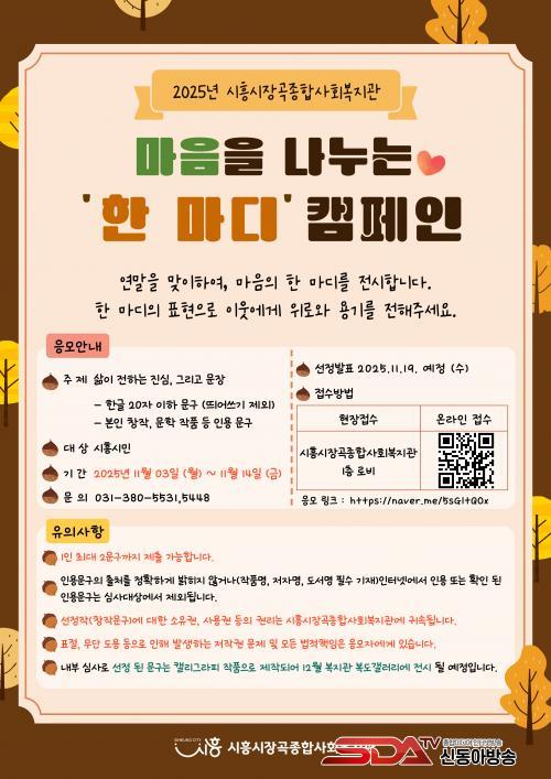 ½ÃÈï½ÃÀå°îÁ¾ÇÕ»çȸº¹Áö°ü, ¡®¸¶À½À» ³ª´©´Â ÇÑ ¸¶µð¡¯ Ä·ÆäÀÎ ÁøÇà