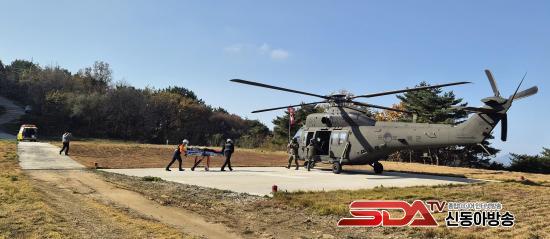 ¡Û À̹ø ÈÆ·ÃÀº ºÏÁ¢°æ µµ¼Áö¿ªÀÎ ±³µ¿¿¡¼ ÀÀ±ÞȯÀÚ ¹ß»ý ½Ã, ±º»çÅëÁ¦±¸¿ªÀ¸·Î ÀÎÇÑ ºñÇàÁ¦ÇÑ µîÀ¸·Î ¼Ò¹æÇ×°ø´ë Çï±â Ã⵿ÀÌ ¾î·Á¿î »óȲÀ» °¡Á¤Çϰí, ±º ¸Þµð¿Â Çï±â¸¦ ±ä±Þ ÅõÀÔÇØ ȯÀÚ¸¦ À̼ÛÇÏ´Â ½ÇÁ¦ »óȲ Áß½ÉÀÇ ÇÕµ¿ÈÆ·ÃÀ¸·Î ÁøÇàµÆ´Ù.