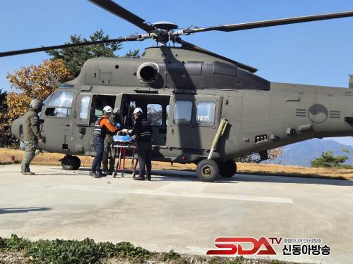 ¡Û À̾î À°±ºÇ×°ø»ç·ÉºÎ Àǹ«ÈļÛÇ×°ø´ë°¡ Ã⵿ Áö½Ã¸¦ ¹Þ°í ¸Þµð¿Â Çï±â¸¦ Æí¼º, °È±º ÇÏÁ¡¸é ÇØº´´ë Á¦2»ç´Ü Çï±âÀåÀ¸·Î À̵¿ÇÏ¿´´Ù. ±³µ¿ ±¸±Þ´ë°¡ ȯÀÚ¸¦ ÀΰèÇÏ°í ¸Þµð¿Â Çï±â´Â ÀÇ·á±â°üÀ¸·Î ±ä±Þ À̼ÛÇϸç ÈÆ·ÃÀÌ ¸¶¹«¸®µÆ´Ù.