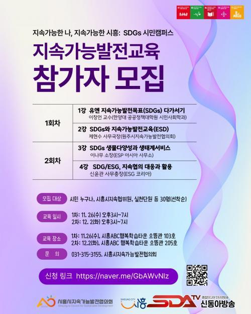 [½Åµ¿¾Æ¹æ¼Û ½ÃÈï½Ã=À̽ŵ¿±âÀÚ] ½ÃÈï½ÃÁö¼Ó°¡´É¹ßÀüÇùÀÇȸ(ÀÌÇÏ, ½ÃÈï½ÃÁö¼ÓÇù)´Â ¿À´Â 11¿ù 26Àϰú 12¿ù 2ÀÏ ½ÃÈïABCÇູÇнÀŸ¿î¿¡¼­ ¾çÀϰ£ ¡®Áö¼Ó°¡´ÉÇÑ ³ª, Áö¼Ó°¡´ÉÇÑ ½ÃÈï SDGs ½Ã¹ÎÄ·ÆÛ½º¡¯¸¦ °³ÃÖÇÑ´Ù.