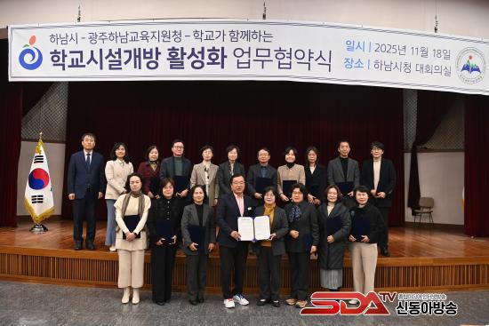 11¿ù 18ÀÏ ½Ãû ´ëȸÀǽǿ¡¼­ ¿­¸° ¡®Çб³½Ã¼³°³¹æÈ°¼ºÈ­ ¾÷¹«Çù¾à½Ä¡¯¿¡¼­ ÀÌÇöÀç Çϳ²½ÃÀå(¿ÞÂÊ ³× ¹øÂ°)¿Í ¿À¼º¾Ö ±¤ÁÖÇϳ²±³À°Áö¿øÃ» ±³À°Àå(¿À¸¥ÂÊ ³× ¹øÂ°)¸¦ ºñ·ÔÇÑ Çù¾à Çб³Àå ¹× °¢ ±â°ü °£ºÎ µîÀÌ Çù¾à ÈÄ ±â³äÃÔ¿µÀ» Çϰí ÀÖ´Ù.