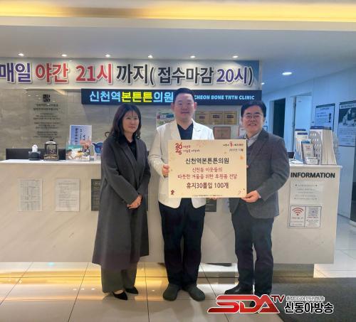 [½Åµ¿¾Æ¹æ¼Û ½ÃÈï½Ã=À̽ŵ¿±âÀÚ] ½Åõ¿ªº»Æ°Æ°ÀÇ¿øÀº Áö³­ 12¿ù 9ÀÏ ½Åõµ¿ ÇàÁ¤º¹Áö¼¾ÅÍ¿¡ ÈÞÁö 30·Ñ, 100°³¸¦ Àü´ÞÇϸç ÀÌ¿ô »ç¶ûÀ» ½ÇõÇß´Ù.