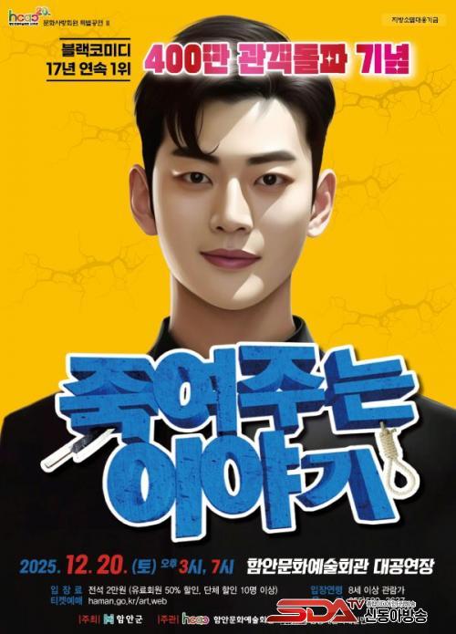 [½Åµ¿¾Æ¹æ¼Û °æ³²ÇÔ¾È=À̽ŵ¿±âÀÚ] ´ëÇзΠ´ëÇ¥ »ó½Ã °ø¿¬ ÀÛǰÀÌÀÚ 17³â°£ ²ÙÁØÇÑ »ç¶ûÀ» ¹Þ¾Æ¿Â ¿¬±Ø ¡®Á׿©ÁÖ´Â À̾߱⡯°¡ ¿À´Â 20ÀÏ ¿ÀÈÄ 3½Ã¿Í 7½Ã, ÇԾȹ®È­¿¹¼úȸ°ü ´ë°ø¿¬Àå¿¡¼­ ÇÔ¾È °ü°´µéÀ» ¸¸³­´Ù.