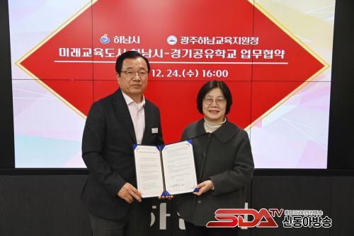 [½Åµ¿¾Æ¹æ¼Û Çϳ²½Ã=À̽ŵ¿±âÀÚ] Çϳ²½Ã´Â 24ÀÏ ½Ãû Áý¹«½Ç¿¡¼­ °æ±âµµ±¤ÁÖÇϳ²±³À°Áö¿øÃ»°ú Áö¿ª ±³À° Çù·ÂÀ» °­È­Çϱâ À§ÇÑ ¡¸¹Ì·¡±³À°µµ½Ã Çϳ²½Ã–°æ±â°øÀ¯Çб³ ¾÷¹«Çù¾à¡¹À» ü°áÇß´Ù°í ¹àÇû´Ù. À̳¯ Çù¾à½Ä¿¡´Â ÀÌÇöÀç Çϳ²½ÃÀåÀ» ºñ·ÔÇØ ¿À¼º¾Ö ±¤ÁÖÇϳ²±³À°Áö¿øÃ» ±³À°Àå µî ¾ç ±â°ü °ü°èÀÚµéÀÌ Âü¼®Çß´Ù.