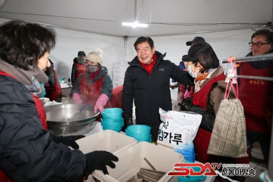 ¿ÃÇØµµ ±× ½ÄŹÀº ³Ë³ËÇß´Ù. ÇÑÆÄÁÖÀǺ¸°¡ ¿¹º¸µÈ Ãß¿î ³¯¾¾¿¡µµ ¾à 5000¿© ¸íÀÌ ¹èºÀ»êÀ» ã¾Ò°í, ¿ÀÀü 9½Ã±îÁö ¶±±¹ 3600¿© ±×¸©ÀÌ ³ª´²Á³´Ù. ¸¶À»Çà»çÃßÁøÀ§¿øÈ¸¿Í ÀÚ¿øºÀ»çÀÚµé, Àü³ó2µ¿À» ºñ·ÔÇÑ µ¿´ë¹®±¸ À¯°üºÎ¼­ Á÷¿øµéÀº »õº®ºÎÅÍ ¼Õ¹ßÀ» ¸ÂÃè´Ù. ¶ß°Å¿î ±×¸©À» °Ç³×¸ç ¡°Á¶½ÉÇϼ¼¿ä¡±¸¦ µÇÇ®ÀÌÇß°í, ¾ÆÀ̵鿡°Õ ±¹¹°À» ½ÄÇô ÁÖ¸ç ¡°ÃµÃµÈ÷¡±¸¦ ´õÇß´Ù. ±× ¸ðµç µðÅ×ÀÏÀÌ ÀÌ Çà»ç¸¦ ¡®µ¿³×°¡ ½º½º·Î °¡²Ù´Â »õÇØ dz°æ¡¯À¸·Î ¸¸µé¾ú´Ù.