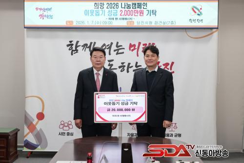 ¿À¼ºÈ¯ ´çÁø½ÃÀåÀº ¡°¾î·Á¿î °æÁ¦ ¿©°Ç ¼Ó¿¡¼­µµ Áö¿ª»çȸ¸¦ À§ÇÑ µû¶æÇÑ ³ª´®¿¡ µ¿ÂüÇØ ÁֽŠ¹Ì·¡¾Ø¼­ÇØ¿¡³ÊÁö¿¡ ±íÀÌ °¨»çµå¸°´Ù¡±¸ç ¡°±âÅ¹ÇØ ÁֽмÒÁßÇÑ ¼º±ÝÀº µµ¿òÀÌ ²À ÇÊ¿äÇÑ ÀÌ¿ôµé¿¡°Ô Àß Àü´ÞµÉ ¼ö ÀÖµµ·Ï Çϰڴ١±°í ¸»Çß´Ù.