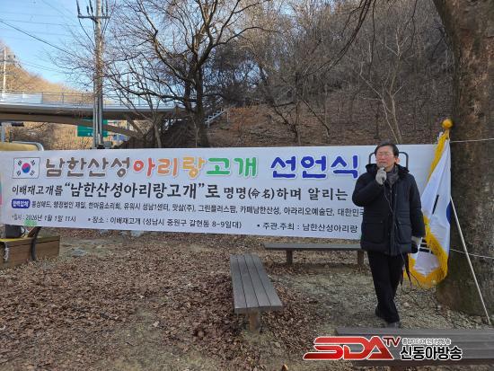 Áö³­ 1¿ù 1ÀÏ À̹èÀç °í°³¿¡¼­ ¼±Æ÷ÇÑ ¡®³²Çѻ꼺¾Æ¸®¶û°í°³ ¼±¾ð¡¯À» ÇϰíÀÖ´Â ±èż· ÀÌ»ç.