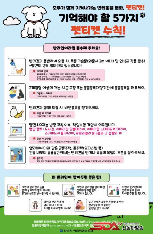 È«º¸¹°¿¡´Â ¡ã¿ÜÃ⠽à ¸ñÁÙ¡¤°¡½¿ÁÙ(2m À̳») ¹× ÀνÄÇ¥ Âø¿ë ¡ã2°³¿ù·É ÀÌ»ó ¹Ý·Á°ßÀÇ µ¿¹°µî·Ï ¡ã¹èº¯ ºÀÅõ ÁöÂü ¡ã¸Í°ß ¼ÒÀ¯ÀÚÀÇ ¹ýÁ¤ ±³À° À̼ö ¡ã¿¤¸®º£ÀÌÅÍ ³» ¹Ý·Áµ¿¹° ¾È±â µî '±â¾ïÇØ¾ß ÇÒ 5°¡Áö ÆêƼÄÏ'ÀÌ ´ã°å´Ù. ºñ¹Ý·ÁÀÎÀ» À§Çؼµµ ŸÀÎÀÇ ¹Ý·Á°ßÀ» ÀÀ½ÃÇϰųª µ¿ÀÇ ¾øÀÌ ¸¸ÁöÁö ¾Ê±â µîÀÇ ¿¡Æ¼ÄÏÀ» ÇÔ²² ¾È³»ÇØ ÁֹΠ°£ °¥µî ¿¹¹æ¿¡ Èû¾²°í ÀÖ´Ù.