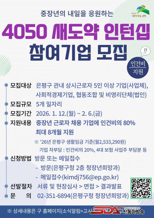 ¡°4050 ÀçÃë¾÷ µ½´Â´Ù¡±¡¦ ÀºÆò±¸, 4050 »õµµ¾à ÀÎÅÏ½Ê ÇÁ·Î±×·¥ Âü¿©±â¾÷ ¸ðÁý