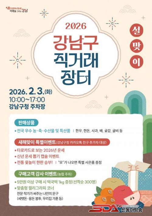 [½Åµ¿¾Æ¹æ¼Û °­³²±¸=À̽ŵ¿±âÀÚ] ²ÞÀÌ ¸ðÀÌ´Â µµ½Ã, ¹Ì·¡¸¦ ±×¸®´Â °­³²±¸°¡ ¼³ ¸íÀýÀ» ¾ÕµÎ°í ¿À´Â 2¿ù 3ÀÏ ¿ÀÀü 10½ÃºÎÅÍ ¿ÀÈÄ 5½Ã±îÁö ±¸Ã» ÁÖÂ÷Àå¿¡¼­ ¡®2026 ¼³¸ÂÀÌ °­³²±¸ Á÷°Å·¡ÀåÅÍ¡¯¸¦ ¿¬´Ù. »êÁö¿Í ¼ÒºñÀÚ¸¦ Á÷Á¢ ¿¬°áÇØ ¸íÀý À庸±â ºÎ´ãÀ» ´ú°í, µµ³ó ±³·ù¿Í Áö¿ª »ó»ýÀ» ³ÐÈ÷´Â ÀÚ¸®·Î ¸¶·ÃÇß´Ù.