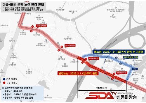 Çϳ²½Ã´Â ¹æ¾Æ´Ù¸®±æ Àü±¸°£ °³Åë¿¡ µû¶ó ±âÁ¸ÀÇ ¸¶À» ¼Ò·Î¸¦ °æÀ¯ÇÏ´ø ¸¶À»-08¹ø ¹ö½ºÀÇ ³ë¼±À» 2026³â 2¿ù 1ÀÏ(ÀÏ) ùÂ÷ºÎÅÍ »õ·Î °³ÅëµÈ ¿Õº¹ 4Â÷¼± ¹æ¾Æ´Ù¸®±æ·Î ¿ìȸÇÏ¿© ¿îÇàÇÑ´Ù°í ¹àÇû´Ù.