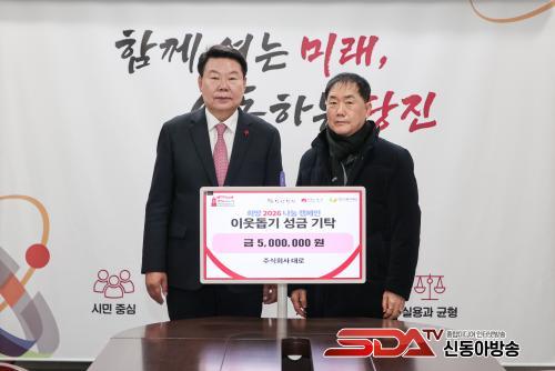 [½Åµ¿¾Æ¹æ¼Û=ÀÌÀçö±âÀÚ] ´çÁø½Ã´Â ÁÖ½Äȸ»ç ´ë·Î(´ëÇ¥ÀÌ»ç ÃÖ¿µÃá)°¡ Áö³­ 13ÀÏ ´çÁø½Ãû 7Ãþ Á¢°ß½Ç¿¡¼­ Áö¿ª ³» Ãë¾à°èÃþÀ» µ½±â À§ÇÑ ¼º±Ý 500¸¸ ¿øÀ» ´çÁø½Ã¿¡ ±âŹÇß´Ù°í ¹àÇû´Ù.