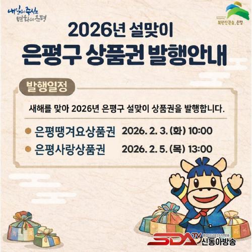 [½Åµ¿¾Æ¹æ¼Û ÀºÆò±¸=À̽ŵ¿±âÀÚ] ¼­¿ï ÀºÆò±¸´Â ¼³ ¸íÀýÀ» ¸Â¾Æ ¿À´Â 2¿ù ù° ÁÖ¿¡ ÀºÆò¶¯°Ü¿ä»óǰ±Ç°ú ÀºÆò»ç¶û»óǰ±ÇÀ» ¹ßÇàÇÑ´Ù°í ¹àÇû´Ù.