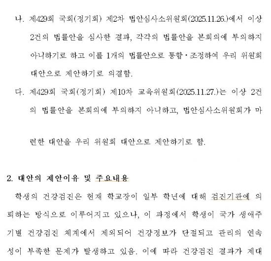 ¹é½Â¾Æ ÀÇ¿øÀÌ ´ëÇ¥¹ßÀÇÇÑ ¡®Çлý°Ç°­°ËÁø °Çº¸°ø´Ü À§Å¹¡¯ ¡¸Çб³º¸°Ç¹ý¡¹ °³Á¤¾È ±¹È¸ Åë°ú