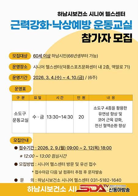 [½Åµ¿¾Æ¹æ¼Û Çϳ²½Ã=À̽ŵ¿±âÀÚ] Çϳ²½Ãº¸°Ç¼Ò´Â ¿À´Â 2¿ù 9ÀϺÎÅÍ 12ÀϱîÁö ½Ã´Ï¾î¸¦ ´ë»óÀ¸·Î ¡®2026³â ±Ù·Â°­È­‧³«»ó¿¹¹æ ¿îµ¿±³½Ç 1±â¡¯ Âü¿©ÀÚ¸¦ ¸ðÁýÇÑ´Ù.