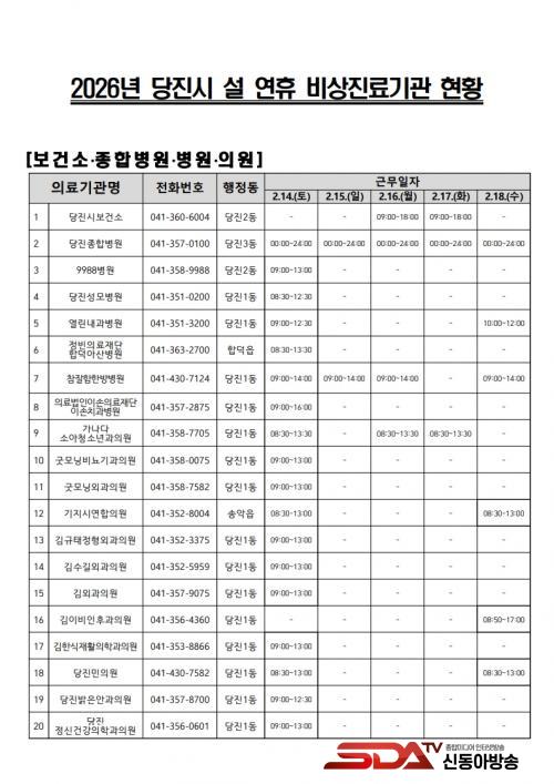 ÇÑÆí, ´çÁø½Ãº¸°Ç¼Ò´Â 2¿ù 16Àϰú 17ÀÏ(¿ÀÀü 9½Ã~¿ÀÈÄ 6½Ã) Áø·á½ÇÀ» ¿î¿µÇϸç, ¿¬ÈÞ Àü ±â°£ Àç³­ ¹× ´Ù¼ö »ç»óÀÚ ¹ß»ý »óȲ¿¡ ´ëºñÇØ ¡®ÀÀ±ÞÀÇ·áÁö¿ø¹Ý¡¯À» Æí¼ºÇÏ¿© Áï°¢ÀûÀÎ ´ëÀÀ ü°è¸¦ °¡µ¿ÇÑ´Ù.