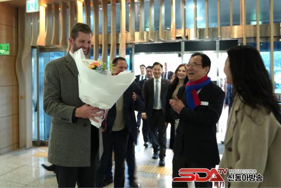 ÀÌÇöÀç Çϳ²½ÃÀåÀÌ À¯´Ï¿ÂŸ¿ö ·Îºñ¿¡ µµÂøÇÑ ¿¡¸¯ Æ®·³ÇÁ Æ®·³ÇÁ ±×·ì ÃѰý ºÎ»çÀå¿¡°Ô ȯ¿µÀÇ ²É´Ù¹ßÀ» Á÷Á¢ Àü´ÞÇÏ¸ç µû¶æÇÑ Àλ縦 °Ç³×°í ÀÖ´Ù. ¿¡¸¯ ºÎ»çÀåÀº Çϳ²½ÃÀÇ Á¤¼º ¾î¸° ȯ´ë¿¡ ¹àÀº Ç¥Á¤À¸·Î È­´äÇß´Ù.