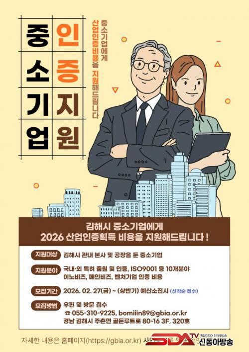 [½Åµ¿¾Æ¹æ¼Û °æ³²±èÇØ=³²±Ã¿µ±â±âÀÚ] ÃÖ±Ù ±Û·Î¹ú °æ±â µÐÈ­¿Í ÀÎÁõºñ¿ë Áõ°¡·Î Áß¼Ò±â¾÷ÀÇ ½ÃÀå ÁøÀÔ ºÎ´ãÀÌ Ä¿Áö´Â °¡¿îµ¥, ±èÇØÀÇ»ý¸í¡¤»ê¾÷ÁøÈï¿ø(¿øÀå ±èÁ¾¿í, ÀÌÇÏ ÁøÈï¿ø)Àº °ü³» Áß¼Ò±â¾÷ÀÇ ¼ºÀå»ýÅÂ°è °­È­¿Í ¸ÅÃâ °æÀï·Â Á¦°í¸¦ À§ÇØ ¡¸2026³â ±èÇØ½Ã Áß¼Ò±â¾÷ »ê¾÷ÀÎÁõºñ¿ë Áö¿ø»ç¾÷¡¹À» ¿À´Â 2¿ù 27ÀÏ ½ÃÇàÇÑ´Ù°í ¹àÇû´Ù.