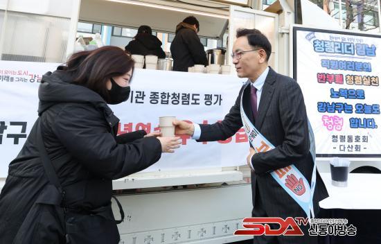 Á¶¼º¸í °­³²±¸Ã»ÀåÀº ¡°3³â ¿¬¼Ó û·Å ¿ì¼öµî±ÞÀº ÇÑ »ç¶÷ÀÇ ³ë·ÂÀ¸·Î ¸¸µç °á°ú°¡ ¾Æ´Ï¶ó, °¢ÀÚÀÇ ÀÚ¸®¿¡¼­ ¿øÄ¢À» ÁöÄѿ Á÷¿øµéÀÌ ÇÔ²² ¸¸µç ¼º°ú¡±¶ó¸ç ¡°¾ÕÀ¸·Îµµ û·ÅÀ» °­³²±¸ ÇàÁ¤ÀÇ °¡Àå ±âº»ÀûÀÎ °æÀï·ÂÀ¸·Î »ï°í, ±¸¹ÎÀÌ ´õ¿í ½Å·ÚÇÒ ¼ö ÀÖ´Â °øÁ¤Çϰí Åõ¸íÇÑ ÇàÁ¤À» Èçµé¸² ¾øÀÌ À̾°Ú´Ù¡±°í ¸»Çß´Ù.