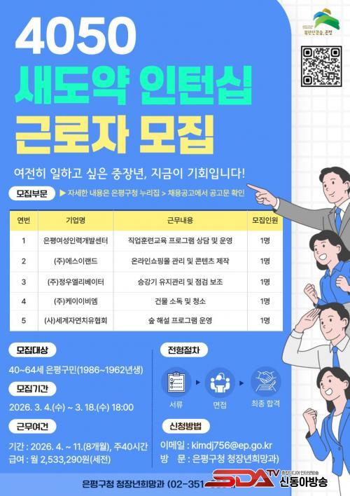 À̹ø »ç¾÷Àº ÁßÀå³âÃþ¿¡°Ô ½Ç¹« °æÇèÀ» Á¦°øÇϰí ÀçÃë¾÷ ¿ª·®À» ³ôÀ̱â À§ÇØ ¸¶·ÃµÆ´Ù. ¸ðÁý ´ë»óÀº °ø°íÀÏ ÇöÀç ÀºÆò±¸¿¡ °ÅÁÖÇÏ´Â 40~64¼¼ ±¸¹ÎÀÌ´Ù.