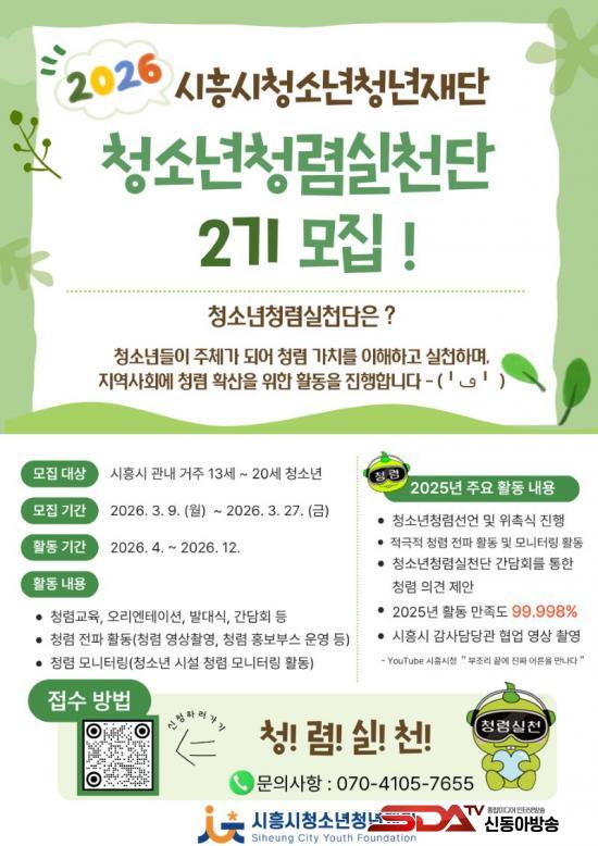 [½Åµ¿¾Æ¹æ¼Û ½ÃÈï½Ã=À̽ŵ¿±âÀÚ] ½ÃÈï½Ã´Â ½ÃÈï½Ãû¼Ò³âû³âÀç´ÜÀÌ Ã»¼Ò³âÀÇ Ã»·Å ÀǽÄÀ» ³ôÀ̰í Áö¿ª»çȸ¿¡ û·Å ¹®È­¸¦ È®»êÇϱâ À§ÇØ ¡®2026³â û¼Ò³âû·Å½Çõ´Ü 2±â¡¯ ½Å±Ô´Ü¿øÀ» 5¸í ¸ðÁýÇÑ´Ù°í ¹àÇû´Ù.