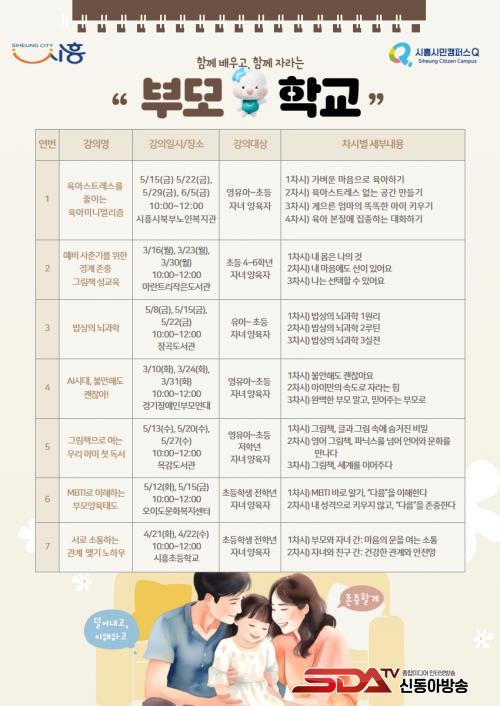 [½Åµ¿¾Æ¹æ¼Û ½ÃÈï½Ã=À̽ŵ¿±âÀÚ] ½ÃÈï½Ã(½ÃÀå ÀÓº´ÅÃ)´Â ÀÌ´ÞºÎÅÍ ¿À´Â 6¿ù±îÁö °ü³» Çкθð ¹× ¿¹ºñ Çкθ𸦠´ë»óÀ¸·Î ºÎ¸ð ¿ª·® °­È­¸¦ À§ÇÑ ¡®Ã£¾Æ°¡´Â ºÎ¸ðÇб³¡¯¸¦ ÃÑ 7°³ °úÁ¤, 20ȸ¿¡ °ÉÃÄ ¿î¿µÇÑ´Ù.