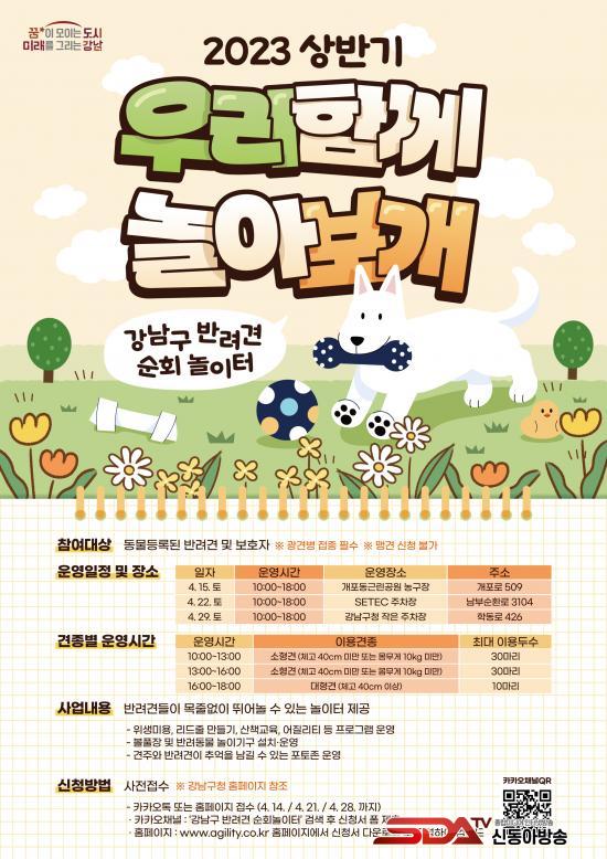 4¿ù 15ÀÏ(Åä) °³Æ÷µ¿±Ù¸°°ø¿ø ³ó±¸Àå, 4¿ù 22ÀÏ(Åä) SETEC ÁÖÂ÷Àå, 4¿ù 29ÀÏ(Åä) °³²±¸Ã» ÀÛÀº ÁÖÂ÷Àå¿¡¼ 10½ÃºÎÅÍ 18½Ã±îÁö ¹«·á·Î ¿î¿µÇÑ´Ù. ÀÌ¿ë ´ë»óÀº 2022³â »ó¹Ý±â ÀÌÈÄ ±¤°ßº´ Á¢Á¾À» ¿Ï·áÇÏ°í µ¿¹°µî·ÏµÈ Áß¡¤¼ÒÇü°ß(ü°í 40cm ¹Ì¸¸ ¶Ç´Â ¸ö¹«°Ô 10kg ¹Ì¸¸)°ú ´ëÇü°ß(ü°í 40cm ÀÌ»ó)ÀÌ´Ù. Áß¡¤¼ÒÇü°ß, ´ëÇü°ßº°·Î ½Ã°£À» ³ª´²¼ ¿î¿µÇÑ´Ù. 10½ÃºÎÅÍ 13½Ã, 13½ÃºÎÅÍ 16½Ã±îÁö´Â °¢°¢ Áß¡¤¼ÒÇü°ß(ÃÖ´ë 30¸¶¸®)ÀÌ, 16½ÃºÎÅÍ 18½Ã±îÁö´Â ´ëÇü°ß(ÃÖ´ë 10¸¶¸®)ÀÌ ÀÌ¿ëÇÒ ¼ö ÀÖ´Ù.
