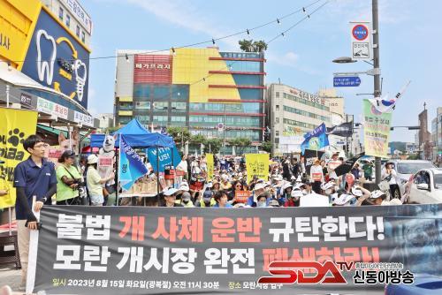 À̳¯ Áýȸ¿¡ Âü¿©ÇÑ ÀοøÀº ¾à 350¸íÀ¸·Î Ãß»êµÈ´Ù. µ¿¹°±ÇÇൿ Ä«¶ó ÀüÁø°æ ´ëÇ¥´Â ¡°¸ð¶õ °³½ÃÀåÀÇ ºÒ¹ýÀûÀÎ ¼Ò¼öÀÇ »óÀÎÀÌ ½ÃÀå°ú ¼º³²½Ã, ´ëÇѹα¹ÀÇ À̹ÌÁö¸¦ ¸ÁÄ¡´Âµ¥ ÀÏÁ¶Çϰí ÀÖ´Ù¡±¸ç ¡°´õ ÀÌ»ó ºÒ¹ý°ú µ¿¹°Çд밡 ³¹«ÇÑ °³½Ä¿ëÀ» ¿ëÀÎÇÒ ¼ö ¾ø´Ù. ¸ð¶õ °³½ÃÀåÀÇ ¿ÏÀü öÆó¸¦ ½ÃÀÛÀ¸·Î °³½Ä¿ë Á¾½ÄÀ» À§ÇØ ÃÖ¼±À» ´ÙÇÒ °Í¡±À̶ó°í ¸»Çß´Ù.